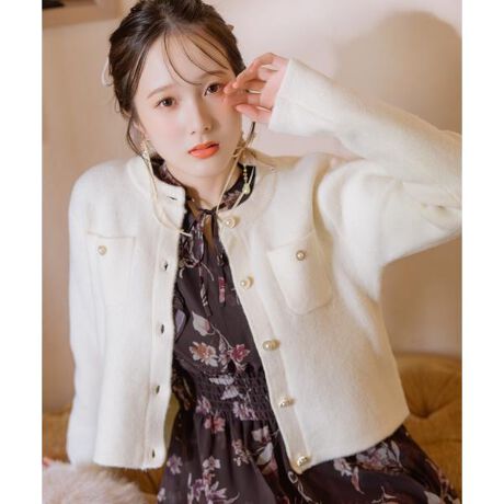 カーディガン感覚で楽しめるモヘアライクジャケット【Design】・モヘアライクなふんわりとした素材感が魅力のニットジャケット。・パールのボタン使いで上品に仕上げました。・袖口や裾はスッキリとしたシルエットに仕上げることで、トップスとしてもライトアウターとしても活躍してくれます♪・リボンタイブラウスの羽織りとして合わせたりするのもおすすめ◎・胸元にはポケット付き。【Fabric】・ふんわりとしたモヘアライクなニット生地を使用。・ご自宅でお手入れが出来るのも嬉しいポイント♪・ホワイト、ピンク、ボルドー、チャコールの4色展開となります。【Care】手洗い可能