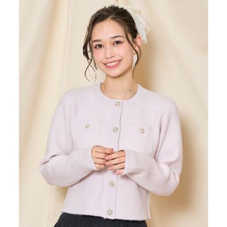 カーディガン感覚で楽しめるモヘアライクジャケット【Design】・モヘアライクなふんわりとした素材感が魅力のニットジャケット。・パールのボタン使いで上品に仕上げました。・袖口や裾はスッキリとしたシルエットに仕上げることで、トップスとしてもライトアウターとしても活躍してくれます♪・リボンタイブラウスの羽織りとして合わせたりするのもおすすめ◎・胸元にはポケット付き。【Fabric】・ふんわりとしたモヘアライクなニット生地を使用。・ご自宅でお手入れが出来るのも嬉しいポイント♪・ホワイト、ピンク、ボルドー、チャコールの4色展開となります。【Care】手洗い可能