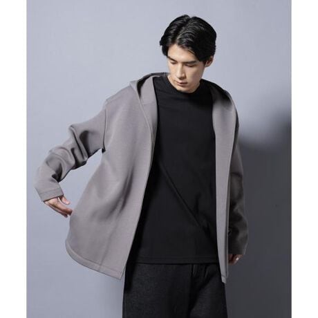・立体的なシルエットの着流しフーディー