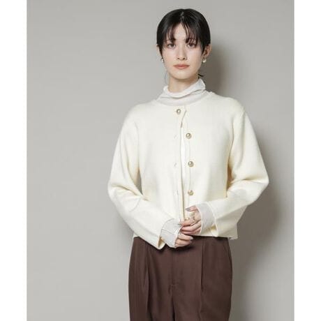 オンオフ着まわせるミラノリブニットカーディガン。ロゴTシャツやボーダーTなど、カジュアルインナーと合わせて着用しても可愛く、ジャケットのようなしっかり感があるのでオフィススタイルにもおすすめの一着です。