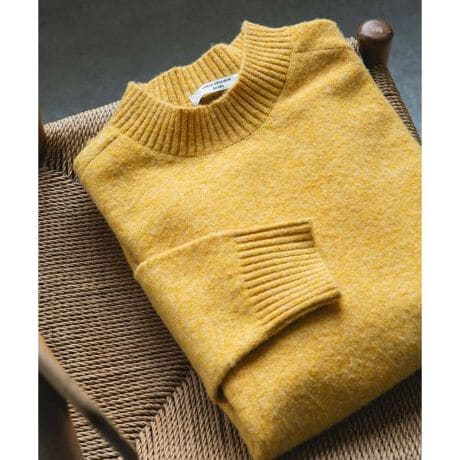 首に沿うような短めのハイネック仕様なので暖かみがありながら品のある着こなしができ、一枚ではもちろんインナーとしても活躍します。