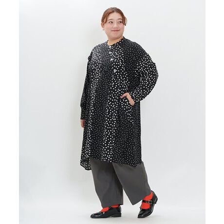 大小のドットを組み合わせた、遊び心のある柄が印象的なチュニック。
