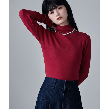 etoll. エトル コーディネートに溶け込んでくれるハイネックのリブニットトップス。