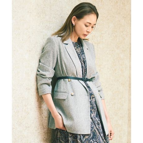 シーンレスで着回しやすいジャケット■デザインオンにもオフにも活躍するダブル前のジャケットです。かっちりし過ぎずきちんと見える、シーンレスでシーズンレスな着回しの効くジャケットです。程よいトレンド感を兼ね備えた絶妙なバランス感が魅力です。フロントや袖口のメタル釦がアクセントになっています。■素材特殊ポリエステルスパン糸のベースの中にTR混紡糸、リング糸、ネップ糸をMIXさせて作ったツイード素材です。ポリエステルスパンがベースとなっているので、ツイーディな見た目の割に軽くて着疲れしにくいのが特徴です。糸による光沢と膨らみ、そして豊かな表情感など、秋冬ツイードのセットアップアイテムに必要な上品な華やかさを併せ持った尾州素材となっております。■同素材アイテムスカート(SKWRGW0409)