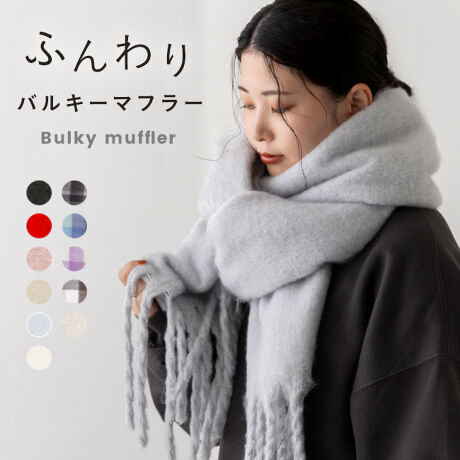 しっかりとした厚みと柔らかな肌ざわりが魅力のバルキーマフラー。