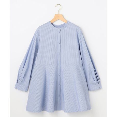 ■デザイン・前後2WAYで着られる仕様のふんわりとしたシルエットが大人可愛いティアードチュニックブラウス。・胸元の切り替え位置にこだわり、裾にかけて上品に広がるフレアデザインが体のラインを拾いづらいのも嬉しいポイント。・流れるような曲線の切り替えは女性らしさを演出してくれます。・端正なスタンドネックで少しだけハンサムな要素をプラスし、大人の程よい甘さに仕上げています。・1枚でサマになるので、シンプルなボトムスと合わせるだけで華やかにまとまります。