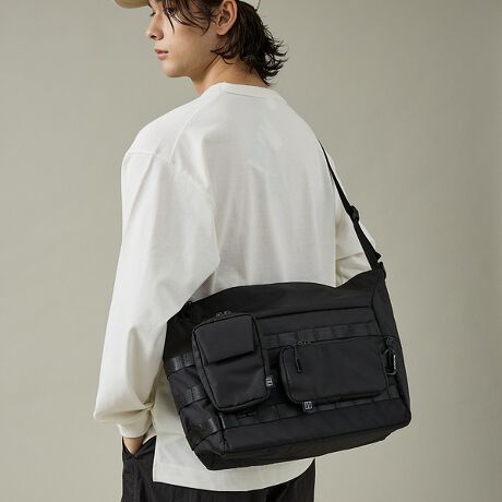 無駄を削ぎ落としたブラックボディに、ミリタリーテイストのギア感を落とし込んだテクニカルショルダーバッグ。