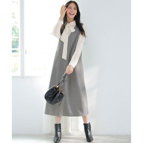 #ANYSIS #エニシス #エニィシス #エニスィス #レディース #ワンピース #ジャンパースカート #Vネック #着回し #通勤 #お仕事 #オフィススタイル #オフィスカジュアル #上品 #フェミニン #カジュアル #きれいめ #洗える #ウォッシャブル