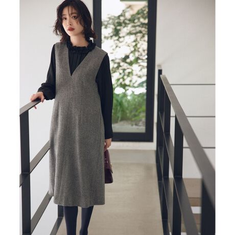 こだわりのツイード素材を使用した上品な大人のジャンパーワンピース