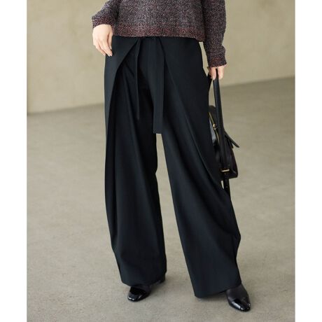 腰巻きディテールがポイントになるワイドパンツ■デザインラップスカートのような腰巻きディテールがきれいめカジュアルな雰囲気のデザインパンツです。腰巻きがウエスト周りをカバーしてくれ、スタイルアップ見えが叶います。太めのワイドストレートシルエットで、コーディネートしやすく、上品なカジュアル感が特徴です。フランスにあるキャラメル屋Maison Pelerinとのコラボレーションアイテムです。【Maison Pelerin】フランスの世界遺産・モンサンミッシェルのふもとを拠点にするMaison Pelerin。クラフトマンシップを大切にし、伝統的な製法を守りながら作られるアイテムは、塩バターキャラメルをはじめ、ナッツやチョコレートなどバリエーション豊かです。工房が併設せれた店舗は、連日多くの人で賑わっています。■素材ドビー織のようなささやかな表情感がポイントの変形ツイル素材です。スラブ糸を使用し、程よくナチュラルな表情感です。適度なハリ感と軽くしなやかな風合いで適度なストレッチ性があり、パンツに最適な素材です。■同素材アイテムテーパードパンツ(PRWRGW0421)