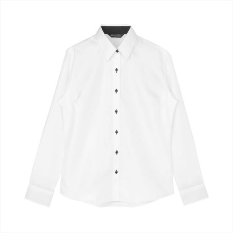 濃色別布・黒ボタンでシルエットのメリハリも感じさせ、機能性とデザイン性がマッチしたワイシャツ。