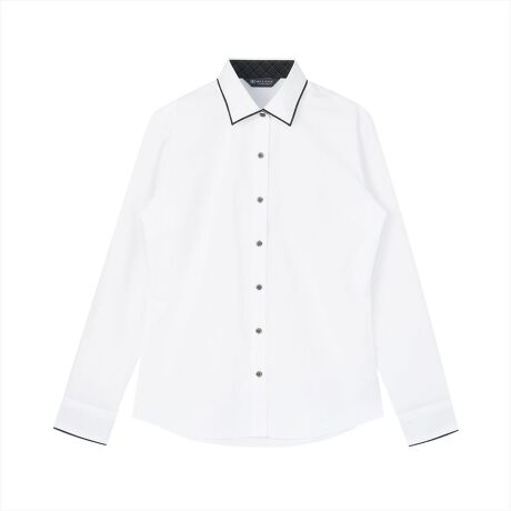 衿羽根・袖を別布で縁取ったエレガンスな仕様のワイシャツ。