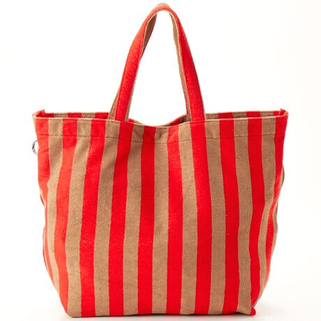 ふんわりやわらかなパイル生地を使った、大きめサイズのトートバッグ。
