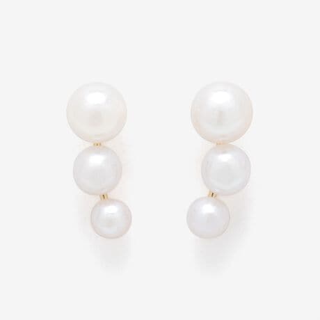 サイズの異なる3粒のパールが、動くたびに柔らかな艶を放ち、表情を明るく照らします。