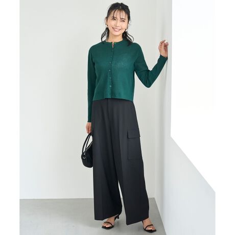■デザイン大人カジュアルなスタイリングに映える、きれいめカーゴパンツ。ミリタリーディテールを取り入れたデザインに、ウール調の上品な素材感とセンタープレスを組み合わせ、女性らしいきちんと感をプラスしました。後ろウエストはゴム仕様で、すっきり見えと快適な穿き心地を両立。さらに、サイドの釦でウエストサイズの調節も可能です。トップスを選ばず、ロングシーズン活躍する万能アイテムです。
