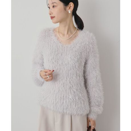 Vネックシャギーニットプルオーバー