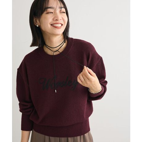表情のあるブークレーニットで仕立てた手触りの心地よいプルオーバートップ。ややゆったりめのシルエットでラフに着用いただけるカジュアルスタイルに最適な1枚です。胸元にはスクリプトな刺繍ロゴをプラスしてスタイリッシュなイメージに。様々なボトムと相性が良く、幅のあるリブアクセントがバランス良く演出します。透け感[ややあり]