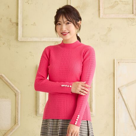 ・インナー使いしやすい、リブ×ケーブル編みのニットプルオーバー