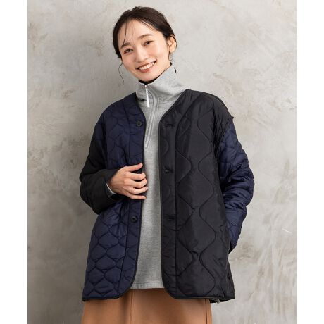 【異ピッチ配色が映える、キルティングMIXブルゾン】