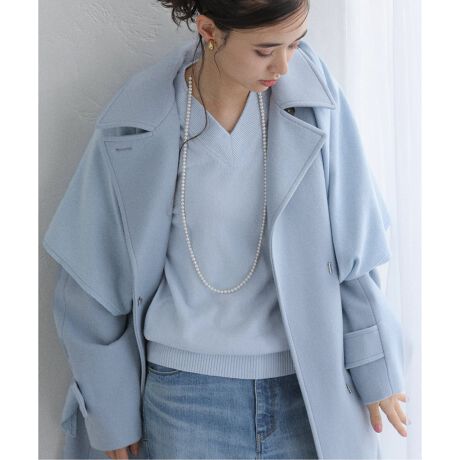 同素材のストールがセットになっており、肩にかけて結ぶだけで立体感のあるスタイリングが完成。