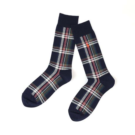 ポロラルフローレン オーガニックコットン混 マドラスチェック柄 クルー丈 メンズ ソックス