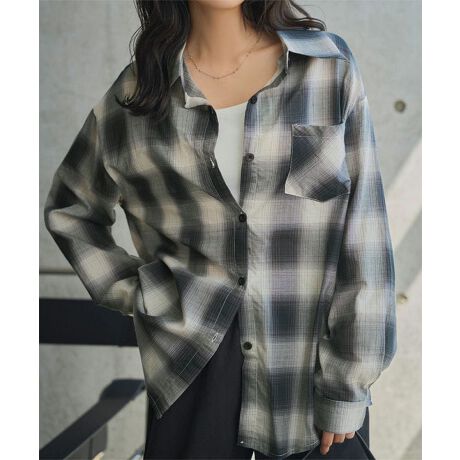 [型番:C7692]レディライクに着れるシアーシャツ。カジュアルなチェック柄ながら軽やかな透け感が女性らしく、抜け感のある雰囲気に。羽織りとしてもボタンの開け具合で様々な表情の着こなしを楽しめるチェックシャツです◎【素材・サイズ感】さらっと肌離れの良いシアー素材。ラフな緩さがサマになるリラックス感のあるオーバーシルエット。夏のシンプルスタイルのアクセント使いにも、暑い日差しや冷房対策にも活躍してくれる一枚です。#コウベレタス