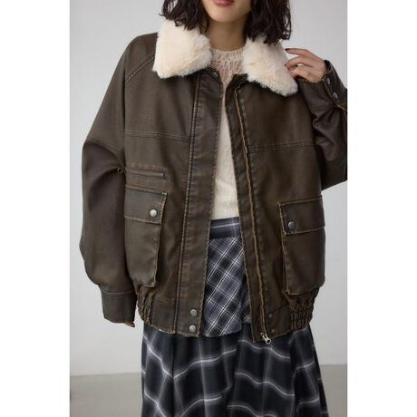 ■ビンテージフェイクレザーシングルブルゾン■ポイント加工を施したヴィンテージ感溢れる一着です。■ディテールオーバーサイズのメンズライクなシルエットに、しっかりと施したヴィンテージ加工が雰囲気満点の拘りポイントです。しなやかな着心地で、見た目にもソフトな雰囲気も魅力。襟のファーは取り外しのできる2way仕様で、スタンドカラーとしても着用いただけます。■スタイリングこなれ感の出るビッグシルエットのレザーはメンズライクな印象なので、女性らしいアイテムと組み合わせると程よく中和されます。トレンドのチェック柄やレースアイテムとのスタイリングがトレンドライクに仕上がりおすすめです。■生地ビンテージ加工施したしっとりなめらかなフェイクレザー素材。透け感:なし裏 地:あり伸縮性:なし光沢感:ややあり[注意事項]※画像の商品はサンプルです。実際の商品と仕様、加工が若干異なる場合があります。※画像の商品は光の照射や角度、お使いのモニター環境により、実物と色味が異なる場合がございます。※着用、お取り扱いの際は、アテンションタグをご確認ください。