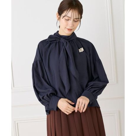 ■デザイン大きめのボウタイが華やかな印象のブラウス。ボウタイはフロントや斜め位置で垂らしたり、リボン結びしたりとアレンジが可能。バックネックのループに通して固定でき、取り外して、スタンドカラーブラウスとしての着こなしも楽しめます。フロントと袖のギャザーでモードな立体感をプラスしつつ、ゆったりとしたサイジングでリラックスした着心地を叶えました。一枚ではもちろん、レイヤードスタイルにも映える一着です。■素材反発感と程よいドレープ感のある風合いの薄手ローン。程良い透け感があり、天然素材の様なナチュラルなルックスが特徴です。・後ろファスナーあり・ボウタイ取り外し可・水洗い可■サンプル撮影商品画像の商品はサンプルです。実際の商品とはサイズや色味、素材、デザイン等の仕様が若干変更になる場合がございます。■カラーについては、可能な限り実際の商品に近いカラーで撮影をおこなっておりますが、照明の関係により実際の製品とは色味が違って見える場合があります。またパソコン・スマートフォンなどの環境により、若干製品と画像のカラーが異なる場合もございます。現物と画像のカラー差異については返品理由となりませんので、予めご了承ください。■サイズ表記はあくまで目安となります。