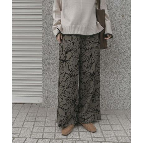 シーズンを重ねてご好評のイージーワイドストレートパンツが、新柄を加えて今年も登場。ウエストはゴム仕様で快適なはき心地ながら、落ち感のある素材と程よいワイドシルエットで、カジュアルにもきれいめにも対応します。新たに加わったドット柄に加え、フラワーモチーフを配したブラウンとグリーンの全3色を展開。シンプルなトップスと合わせるだけで着映えし、毎日の装いに華やかさを添えてくれる一枚です。