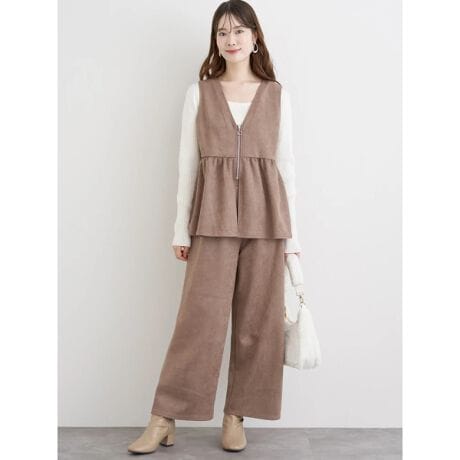 着回し力抜群!単品使いもできるベストとパンツのワイドパンツのセットアップ