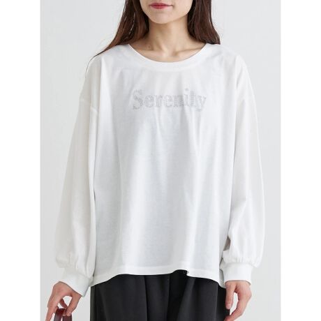 キラキラなジルコンロゴが目を惹く大人カジュアルなロングTシャツ