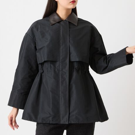 トレンドのフェイクレザーの襟や前後身頃に配したアンブレラヨークなど、間延びさせないデザインにもこだわりました。
