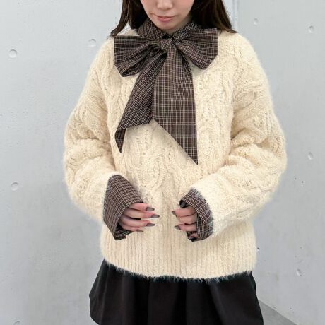 襟付のデザイン&取り外せるタイ付きなので、ニットなどと重ねた時もポイントになります。