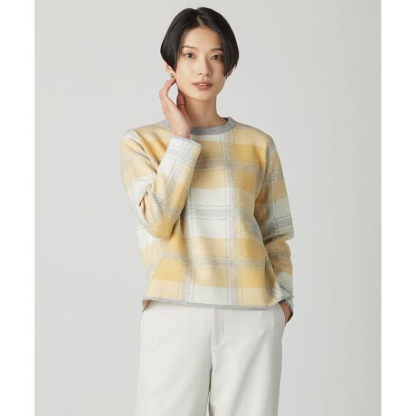 上品カラーのチェック柄で合わせやすい、スタイリングに華やぎをプラスするニット