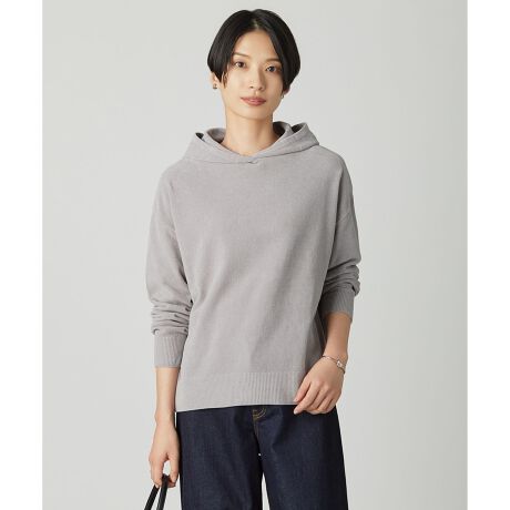 抜け感のある大人カジュアルスタイルに。やわらかなニットの風合いが心地よいフーデッドニット