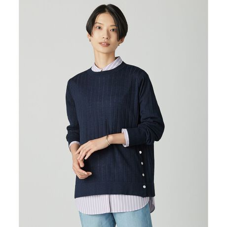 釦ディテールが洒落感のある、肌触りのやさしいクルーネックニット