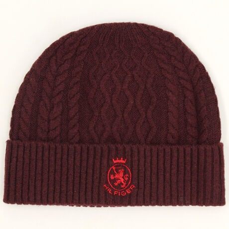ケーブル柄をふっくらと編み込んだニットビーニー。ロール部分はリブで切り替えて、ブランドを象徴するクレスト刺しゅうのアクセントを加えています。被り方によって様々なニュアンスを作り出せる点も魅力のひとつ。パーカーのフードを重ねたり、ドレッシーな着こなしのハズしにもおすすめです。