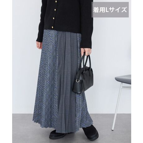 チェックと無地の配色が華やかなプリーツスカート。シックな色合いでモードスタイルに。ウエストは総ゴム仕様で、内紐により調整が可能です。ウエストから裾にかけて広がる緩やかなシルエットが、適度なリラックス感を演出しつつ、上品な印象を与えます。滑らかな質感と程よいハリがあり、美しいドレープ感が魅力の素材です。身長や好みに応じて選べる2丈展開。コンパクトなトップスとのスタイリングがおすすめです。※モデル着用画像は、光の当たり具合で色味が違って見える場合がございます。※お使いのモニター環境によって商品の色味が違って見える場合がございます。