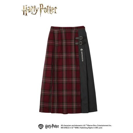 大人気シリーズ「ハリー・ポッター」のEASTBOY限定、チェック×無地のロングスカート。4寮をイメージしたオリジナルチェックを使用しています。左身に各寮のシルバー刺繍入り。右ポケットには杖ポケット付き。ポイントは合皮バックルベルトで、キルトスカート風です。
