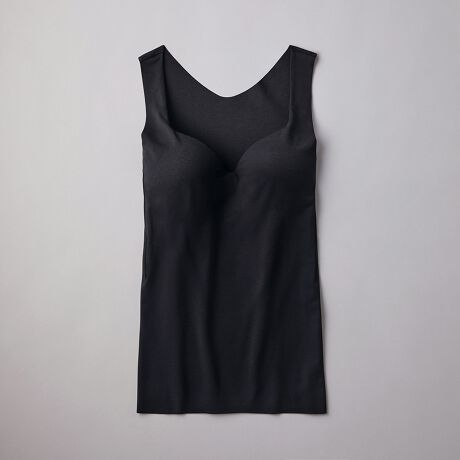 サイドに流れがちなバストラインを一体型のモールドカップがしっかり整え、すっきりとしたシルエットをつくります。生地端はきりっぱなしで低刺激。お肌にやさしく、下着のラインが外にひびきにくくなります。オーガニックコットン混のストレッチ素材が、体にやさしくフィットします。アンダーゴムを無くし、背中からバストにかけての締め付けを減らしました。