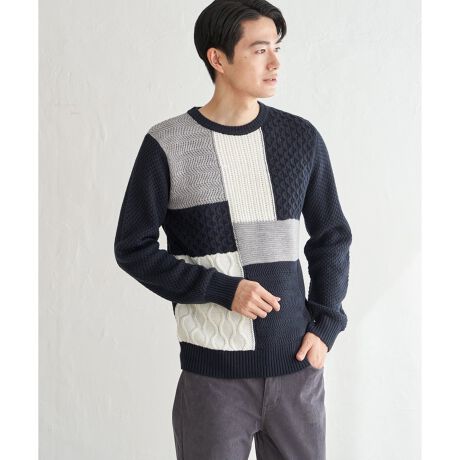 ブロッキングを編地の変化で表現した「ブロックス」シリーズのプルオーバーです。