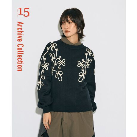 コード刺繍のモチーフ配色ラインがスタイリングに華やかさをプラスするニットプルオーバー。