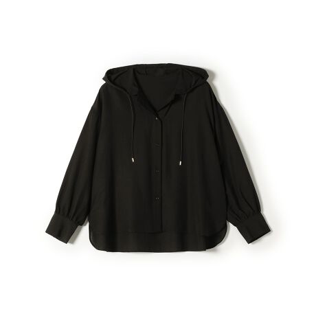 カジュアルさの中にに、大人っぽい上品さをプラスしたフード付きシャツ。