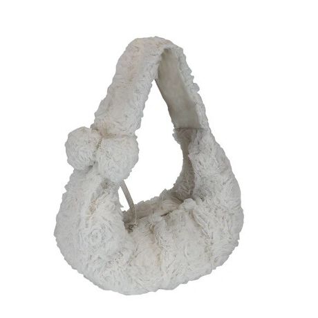 全体に咲き誇る立体的なローズファーが、まるで花束のように優雅で印象的なスリングキャリー。