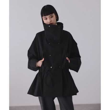 フロントのドットボタン開きやZIPファスナーポケットなどアクティブな印象と、たっぷりの分量を纏った女性らしいシルエットの1着。