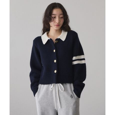 コンパクトなサイズ感と、襟付きのディテールが魅力的なポロニットカーディガン。