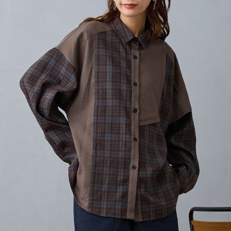 アシンメトリーな切り替えと2種類のチェックの組み合わせが一癖あるオーバーシャツが登場。