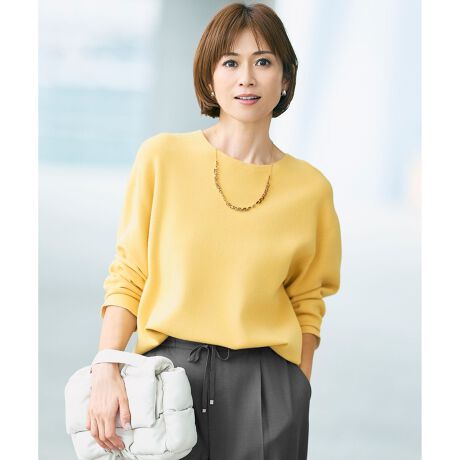 袖口裏の配色も楽しめるニット■デザインオフボディーながらすっきりとしたシルエットのベーシックなニットです。襟をクルーにこなすことで、早めの時期から着て頂けるように仕上げました。袖口裏は配色になっているので、折り返して着て頂くのもおすすめです。■素材しなやかなビスコースにストレッチが入った、適度な落ち感のあるエレガントな素材です。着心地、肌触りが良く、上品な光沢感が特徴です。■同素材アイテムカーディガン(KRW7GW0454)ブラウスライクニット(KRW7GW0456)リブインナーニット(KRW7GW0458)