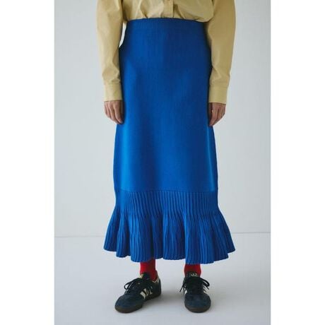 HeRINで人気の糸を使用したニットスカート裾のフリル部分にこだわっており、女性らしいマーメードのようなシルエットがポイント。ウエストもゴムでヒップ周りもタイトすぎないため、体型カバーもしてくれます。軽くてシワになりにくいのも嬉しい。同じ糸でカーディガンもあり、セットアップで着ていただくのもおすすめ。マットなポリエステルの細い糸を多本取りし、ジャージのように編んだニット素材。プリーツヘムニットスカート[注意事項] ※画像の商品はサンプルです。実際の商品と仕様、加工が若干異なる場合があります。 ※画像の商品は光の照射や角度、お使いのモニター環境により、実物と色味が異なる場合がございます。 ※着用、お取り扱いの際は、アテンションタグをご確認ください。