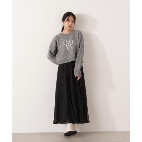 エアリーな素材を使用したセミフレアスカート。ウエストはゴム仕様ではき心地が良いです。軽さのあるスカートなので、ざっくりニットと合わせたコーディネートがお勧めです。